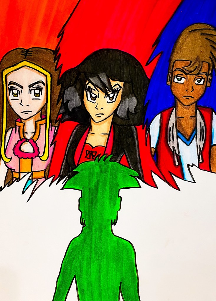 As the two got to the door of Headmaster Devil’s office, the boy went ahead and opened it, entering inside with the girl to a surprise. Headmaster Devil was at his desk, giggling with a young woman by his side. While they continued to laugh, Headmaster Devil turned to the boy and girl, stunned. He jumped out of his seat and shouted, “Zayn, my son! You’re here!”